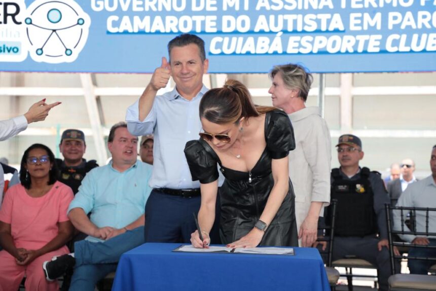 Também foi assinada a prorrogação do Camarote do Autista na Arena Pantanal, em parceria com o Cuiabá Esporte Clube, que dará sequência ao acolhimento do programa SER Família Inclusivo, idealizado pela primeira-dama Virginia Mendes, para crianças e adolescentes que participam dos sorteios.