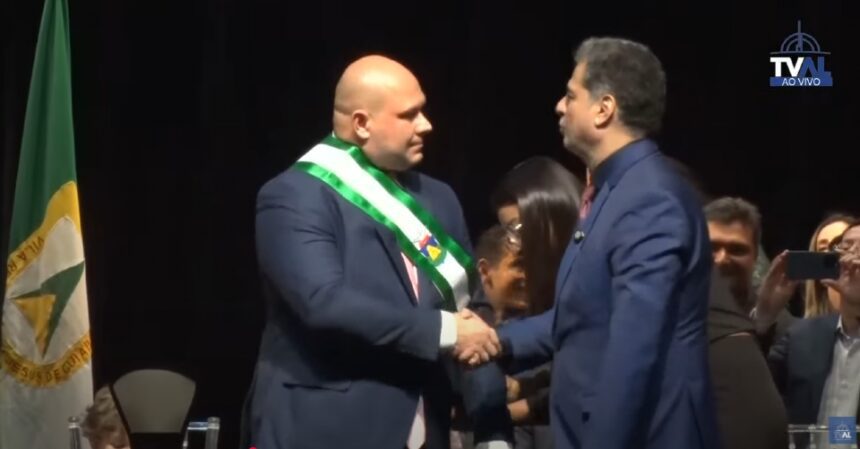O prefeito de Cuiabá, Abílio Brunini (PL) recebeu das mãos do agora ex-prefeito Emanuel Pinheiro (MDB) a faixa durante cerimônia de posse realizada no teatro da Assembleia Legislativa, na noite da última quarta-feira, dia 01 de janeiro. Quando recebeu a faixa, Abílio foi muito aplaudido por quem estava no local prestigiando a cerimônia.