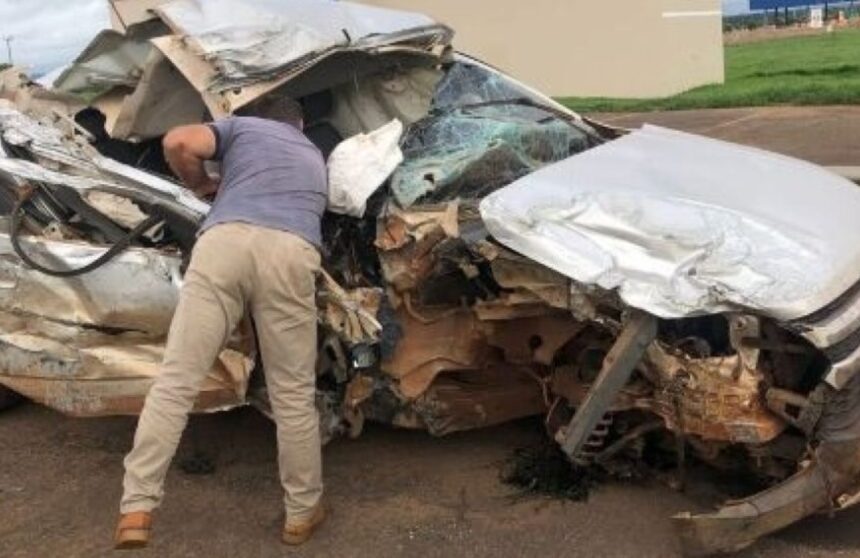 Com a força da batida, a mãe e o bebê foram arremessados para fora da caminhonete.
