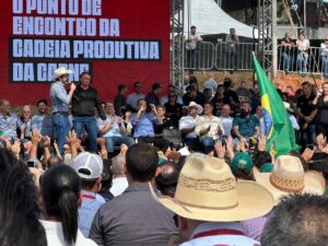 O deputado estadual Gilberto Cattani (PL-MT) representou o estado de Mato Grosso na Feira Internacional da Cadeia Produtiva da Carne (Feicorte), realizada em Presidente Prudente (SP), nesta terça-feira (17). O parlamentar participou do evento ao lado do governador de São Paulo, Tarcísio de Freitas (Republicanos), e do ex-presidente Jair Bolsonaro (PL).