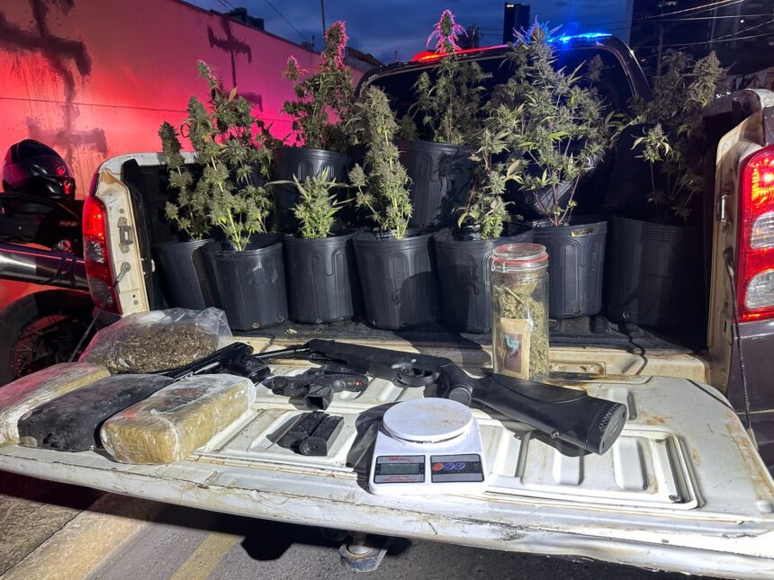 Uma equipe da Companhia de Rondas e Ações Intensivas Ostensivas (RAIO) foi ao local. Chegando lá, encontraram um forte cheiro, característico de maconha. Foram apreendidas dentro de uma estufa 61 plantas de maconha em vasos, além de 33 mudas da mesma planta.