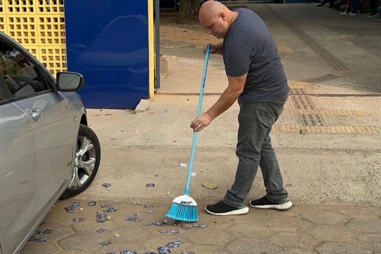 Leia: Cena incomum: candidato a prefeitura varre santinhos jogados em porta de escola