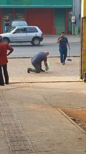 OpiniãoMT > Blog > Eleições > Cena incomum: candidato a prefeitura varre santinhos jogados em porta de escola