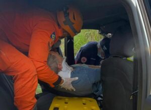 Além do motorista, outras três pessoas ocupavam o carro de passeio: uma mulher de 48 anos, uma idosa de 73 anos e uma criança de 7 anos. Quando o socorro chegou, elas já estavam fora do veículo, apresentando escoriações, hematomas, edemas e queixas de dor no peito.