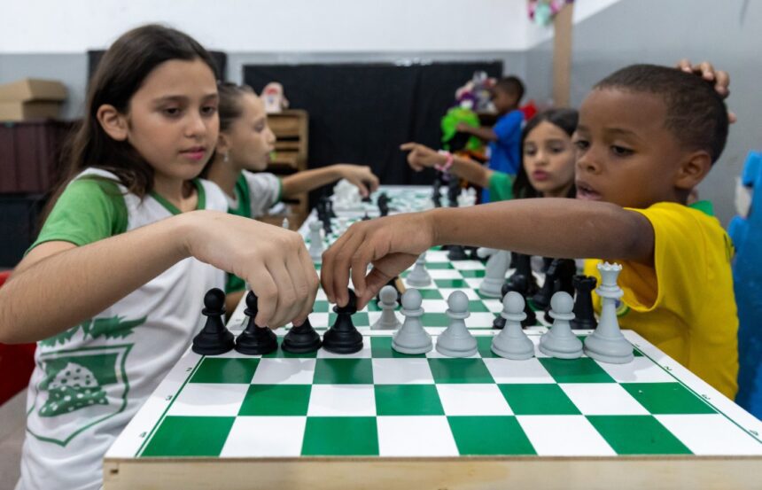 A escola também oferece oficina de teatro e jogos pedagógicos (xadrez e jogos vinculados a alfabetização de Português e Matemática).