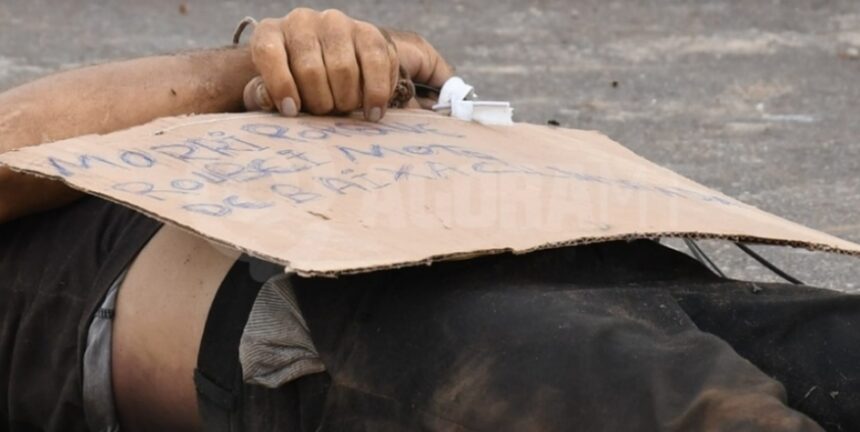 Corpo de homem é encontrado com recado em papelão “morri porque roubei moto de baixa cilindrada”