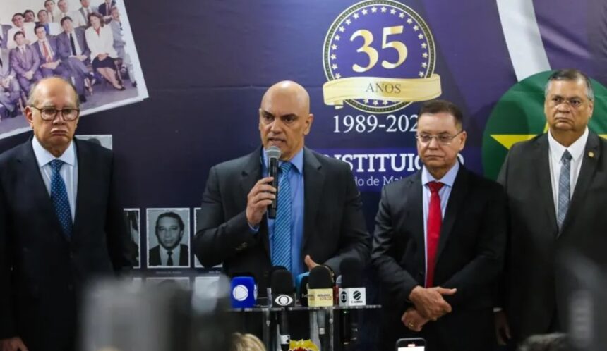 O ministro do STF, Alexandre de Moraes esteve em Cuiabá, juntamente com os ministros Gilmar Mendes e Flávio Dino, na última segunda-feira, dia 18 de novembro. Eles participaram do Seminário de 35 anos da Constituição de Mato Grosso.