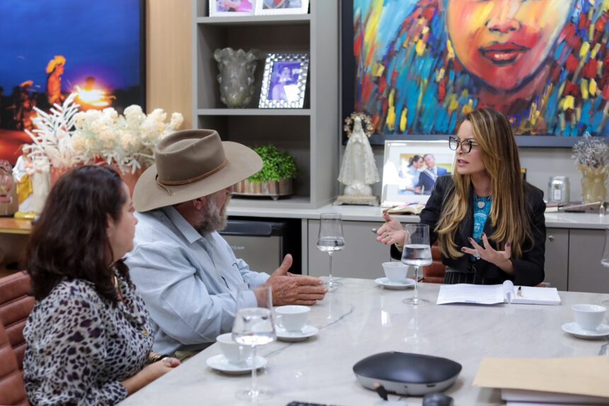 Nesta terça-feira, dia 17 de julho, a primeira-dama de MT, Virginia Mendes, recebeu o deputado federal Nelson Barbudo e sua esposa, a vereadora de Alto Taquari Vânia Regina, em seu gabinete na Unidade de Ações Sociais e Atenção à Família (UNAF), para tratar de parcerias e projetos.