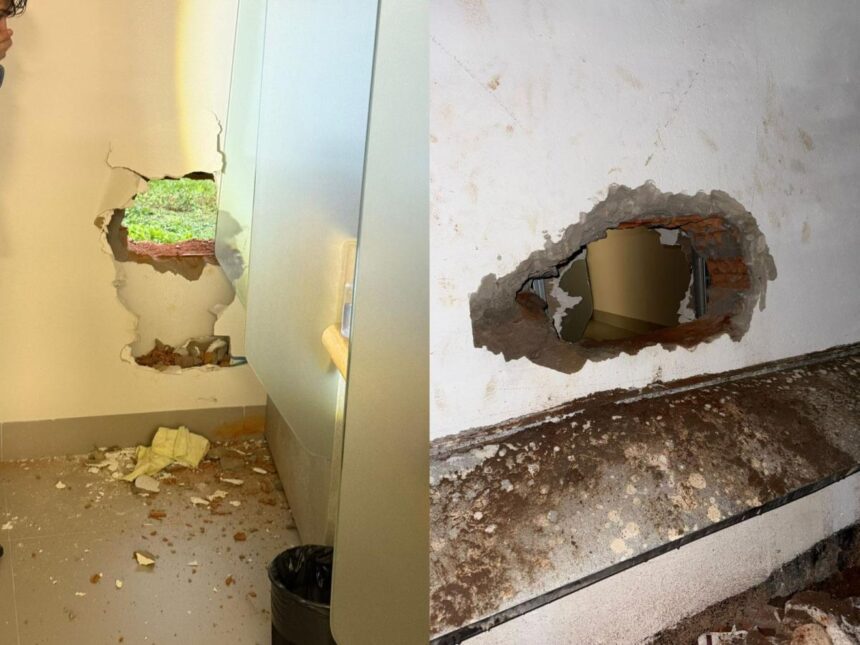 A persistência dos agentes os levou a investigar as casas vizinhas. Foi então que, durante uma busca minuciosa, os policiais notaram um buraco no muro que dividia a residência da agência bancária. Ao espiar pela janela, a equipe da Força Tática avistou ao menos quatro homens e uma mulher dentro da casa.