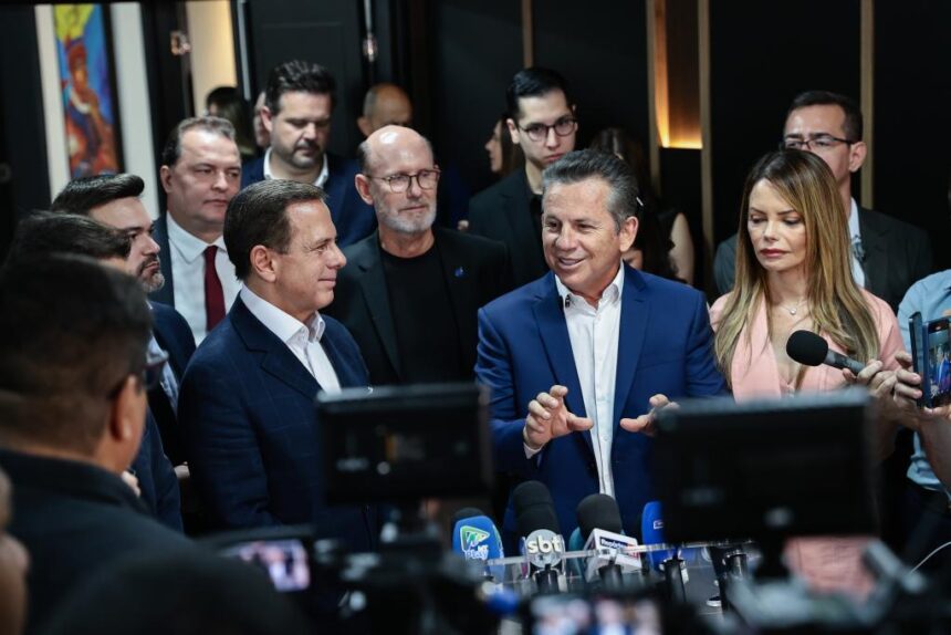 Dória se reuniu com o governador Mauro Mendes e a primeira-dama Virginia Mendes, junto com o presidente e a CEO do LIDE Mato Grosso, Igor Taques e Ruth Semiramys, respectivamente.