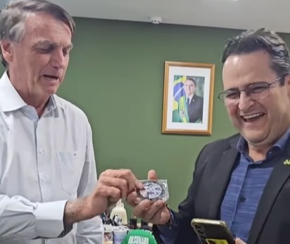 Critinaiada… Nos bastidores de Brasília, olha só a medalha que eu recebi das mãos do Bolsonaro! Agora sim, hein… Kkkkk