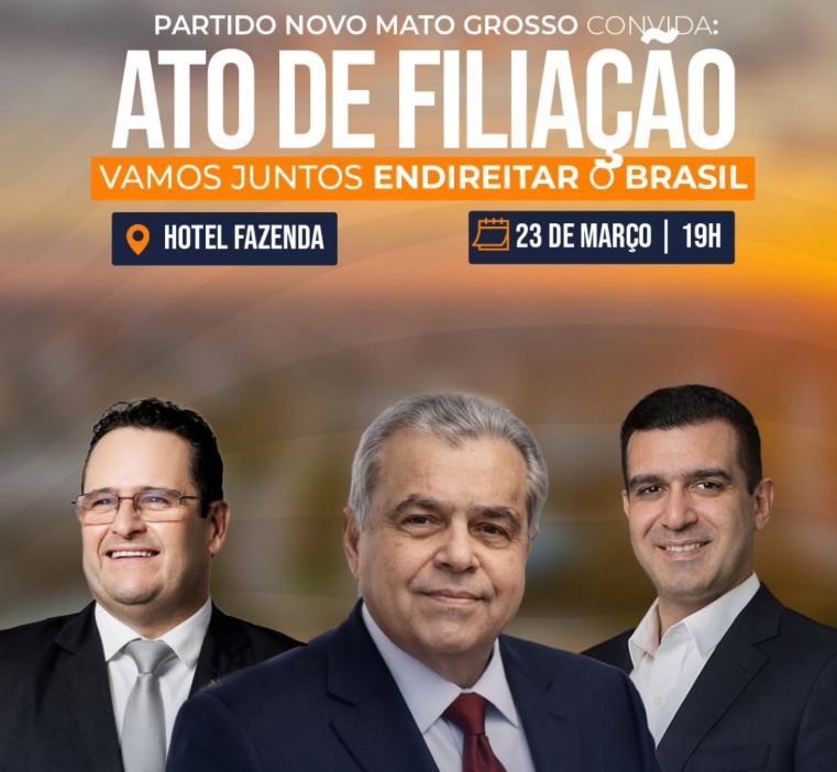 A solenidade de filiação está marcada para as 19 horas, no Hotel Fazenda Mato Grosso, em Cuiabá, e deve reunir lideranças estaduais, apoiadores e figuras do setor acadêmico e político.