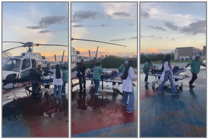 O sargento aposentado tentou fugir mais uma vez, mas acabou caindo em uma cerca de arame. Ele foi imobilizado e resgatado por um helicóptero do Ciopaer. Ele foi levado para atendimento médico no Hospital Municipal de Cuiabá.