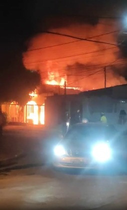 Um incêndio de grandes proporções destruiu uma casa, que fica na Rua Torres, no Bairro CPA 1, em Cuiabá, na noite da última quarta-feira, dia 04 de junho. Devido ao fogo, parte do telhado da residência cedeu, quase atingindo os bombeiros.