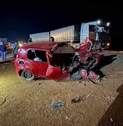 A batida envolveu o carro onde as vítimas estavam e também uma carreta. As imagens registradas no local mostram que o carro de passeio ficou totalmente destruído com o impacto.