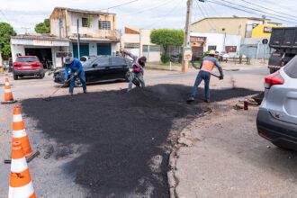 400 toneladas de massa asfáltica foram utilizadas durante Mutirão tapa-buraco no CPA e Morada do Ouro