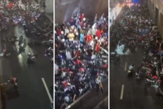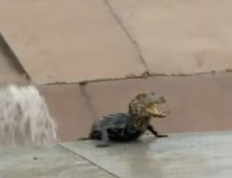Um filhote de jacaré foi flagrado nadando tranquilamente nas águas que invadiram a pista. O animal, que veio do próprio leito do córrego devido à força da correnteza, tornou-se símbolo da força das águas que tomaram a região central.