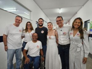 Ele foi acompanhado da candidata vice em sua chapa, Rafaela Fávaro, e também do ministro da Agricultura, Carlos Fávaro.