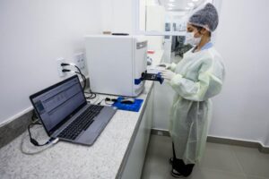 “No início da pandemia, o Laboratório Central tinha uma capacidade técnica de fazer 40 testes RT-PCR, que é o teste ouro da Covid. Hoje, nós estamos estruturados para fazer 10 mil testes em 24 horas. Isso requereu de todo o nosso time, investimento em tecnologia, em discussão e estudos. Esse é um laboratório que foi desenhado desde o projeto para ser um laboratório, não uma instalação improvisada”, afirmou.