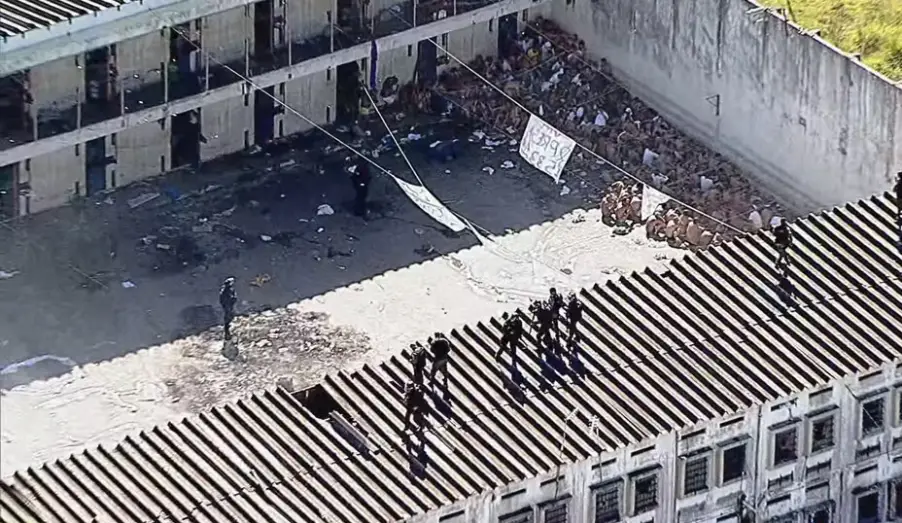 Por volta das 13h, imagens aéreas revelaram detentos colocando fogo em lençóis e colchões no pátio da penitenciária. A situação gerou grande tumulto dentro da unidade. Até o momento, não há informações sobre feridos, e as causas do motim ainda estão sendo investigadas.