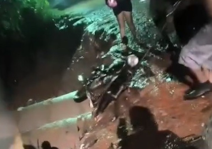 A força da enxurrada puxou o motociclista e a moto dele para dentro do leito do córrego.