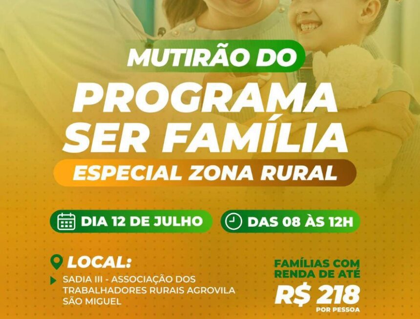 Leia: Mutirão do Programa Ser Família atende moradores da zona rural neste sábado, dia 12