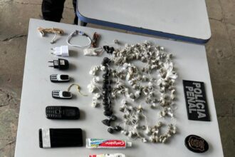 Operação nas unidades prisionais apreende celulares e drogas; policial penal foi preso em flagrante