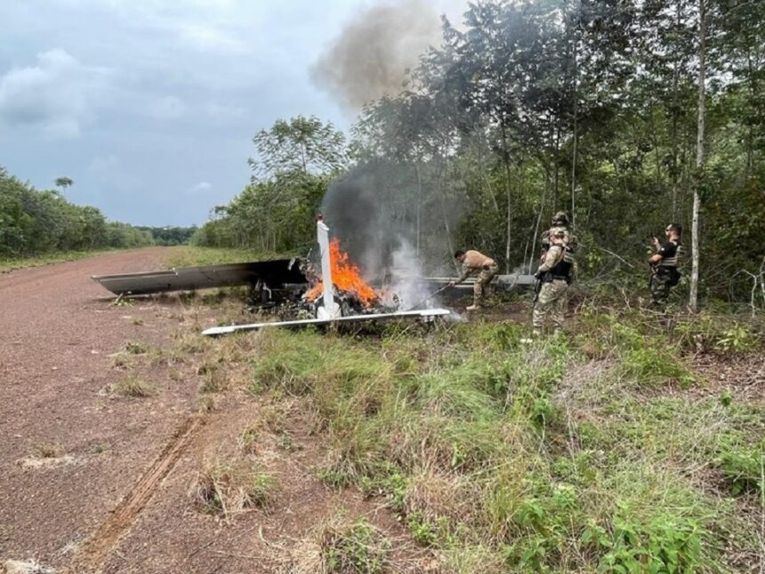 O piloto conseguiu fugir do local depois de atear fogo no avião. A Polícia Federal conseguiu apreender a droga antes que tudo fosse incendiado.