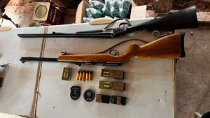 Durante o cumprimento de quatro mandados de busca e apreensão, os policiais localizaram e apreenderam: 01 Espingarda calibre .22, 01 Espingarda de dois canos calibre .20 e dezenas de munições de diversos calibres.