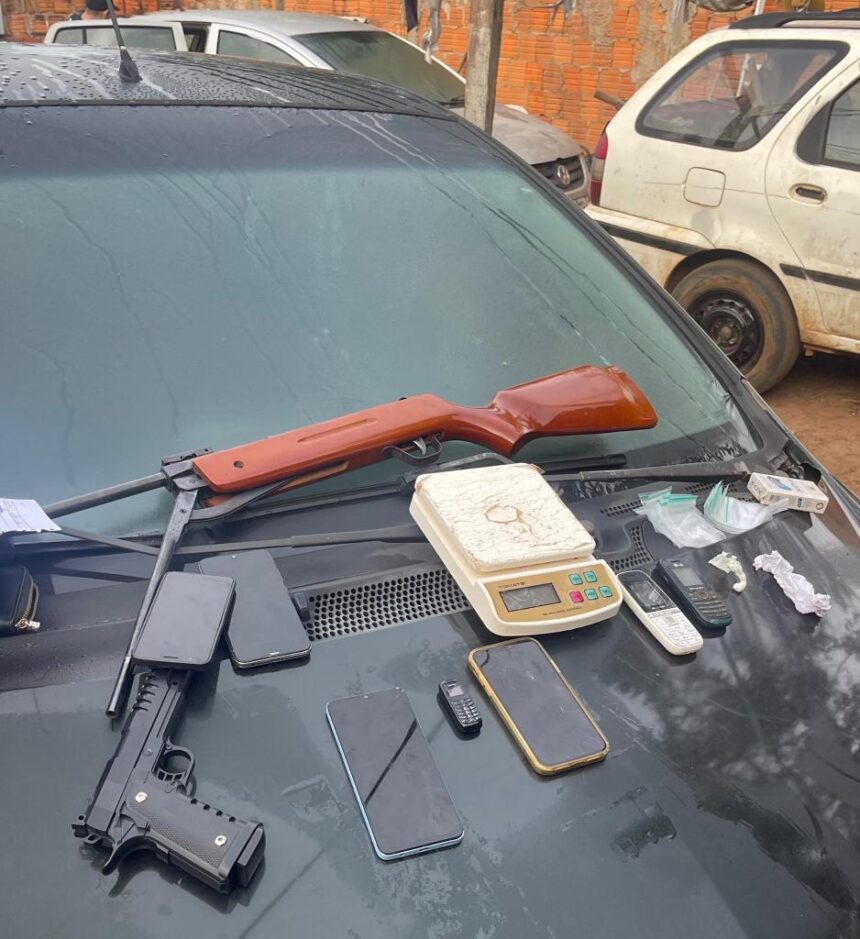 No local, a polícia apreendeu armas, porções de drogas, balança de precisão, petrechos para embalar entorpecentes, celulares, dezenas de notas promissórias usadas como garantia de dívidas e dinheiro.