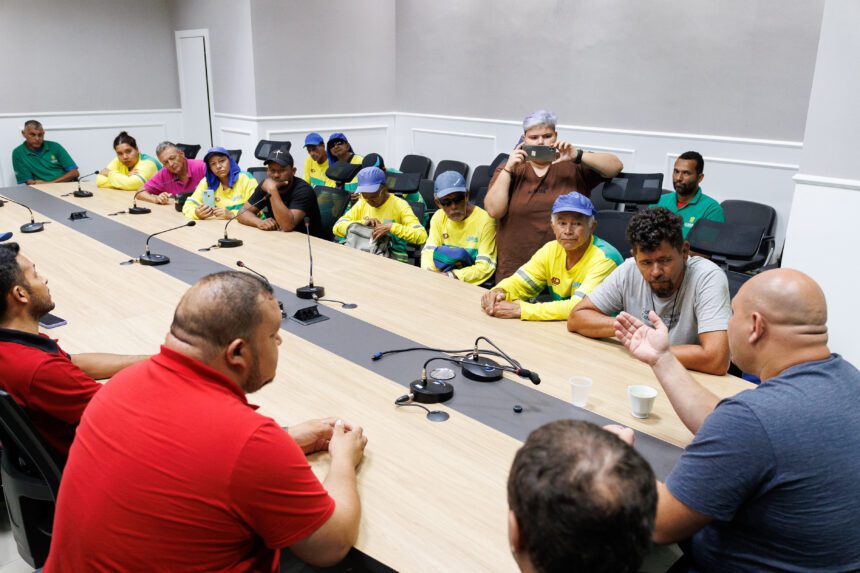 O prefeito Abílio Brunini comandou uma mesa de negociação entre a empresa MD Terceirizações e seus funcionários, responsáveis por serviços de limpeza e zeladoria na capital.