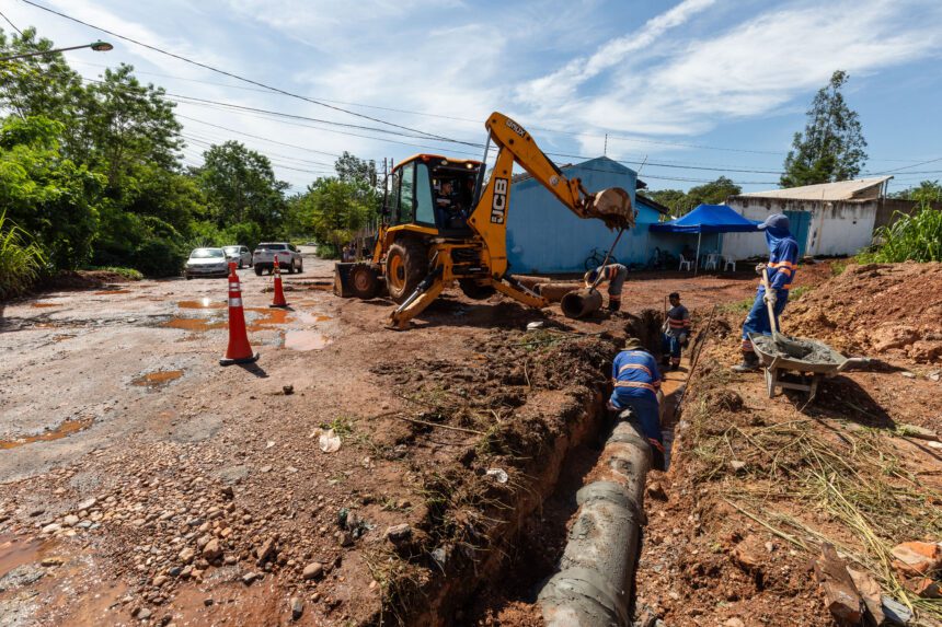 As equipes já realizaram a instalação de manilhas de concreto, uma etapa fundamental para otimizar a drenagem das águas pluviais e prevenir alagamentos.