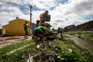 Os serviços contam com o apoio de um caminhão hidrojato, popularmente conhecido como “tatuzão”. O equipamento é utilizado para jatear água em alta pressão, facilitando a limpeza de áreas de difícil acesso, como caixas coletoras e anexos de drenagem, além de aspirar os resíduos acumulados. O objetivo é desobstruir os pontos críticos e garantir a eficiência do sistema de escoamento.