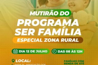 Mutirão do Programa Ser Família atende moradores da zona rural neste sábado, dia 12