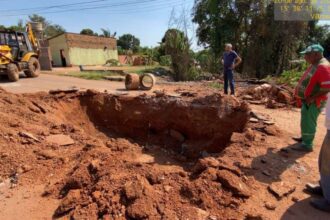 Várzea Grande atua em emergência para fechar cratera e liberar rua no Jardim Alá