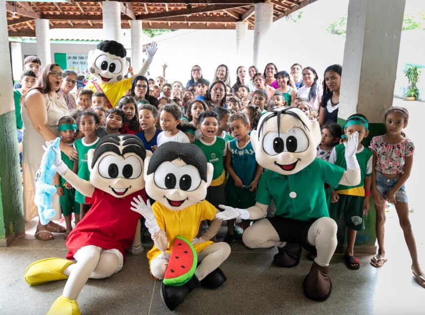 Os personagens Mônica, Magali, Cebolinha e Cascão, devidamente fantasiados, participaram de uma apresentação teatral, bastante celebrada pelos estudantes.
