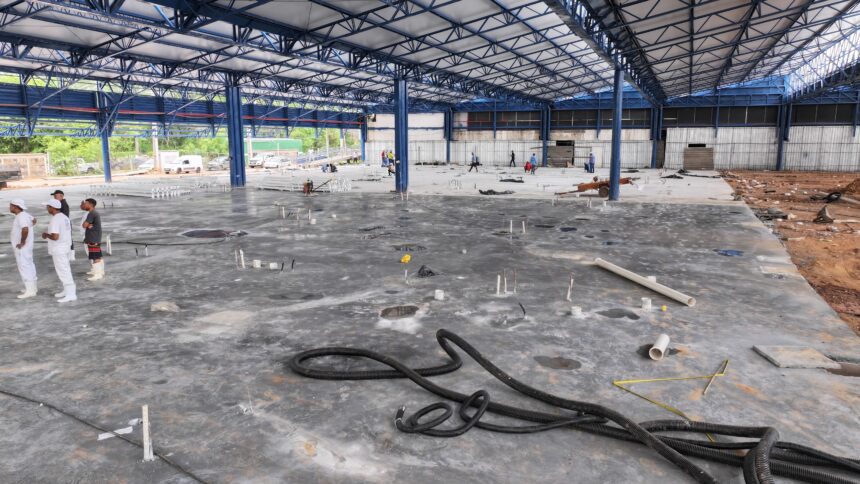 A rede de esgoto está com 80% concluída, e a concretagem do piso será finalizada nos próximos dias. Além disso, a estrutura dos novos espaços comerciais já começou a ser erguida, com cerca de 25% concluída.