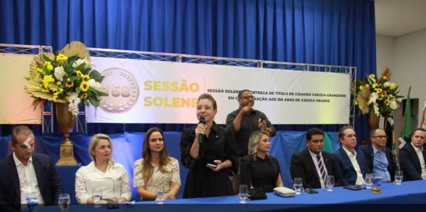 “Nesse momento, nos perguntamos: o que nos torna cidadãos de uma cidade?”, refletiu a prefeita Flávia Moretti (PL) durante a sessão solene da Câmara Municipal de Várzea Grande, realizada na noite da última quarta-feira, 14 de maio. O evento celebrou os 158 anos de fundação do município e homenageou personalidades com o título de cidadão várzea-grandense por suas contribuições ao desenvolvimento local.