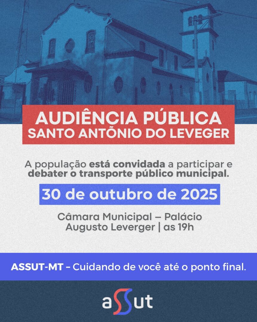 Os graves problemas enfrentados diariamente pelos usuários do transporte coletivo na Baixada Cuiabana e em todo o estado serão o foco de uma audiência pública crucial marcada para o próximo dia 30 de outubro, na Câmara Municipal de Santo Antônio de Leverger. A iniciativa, convocada pela Associação dos Usuários do Transporte Coletivo (ASSUT) visa debater a qualidade do serviço, os recentes aumentos de tarifa e a insegurança nos veículos.