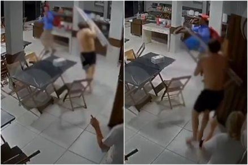 Ao perceber a situação, o dono do restaurante, que estava em outro cômodo, pegou uma escada e correu até o salão. Ele reagiu de forma inesperada, fazendo com que o criminoso derrubasse a faca no chão. Surpreendido, o assaltante, que não contava com a reação do proprietário, fugiu do local sem conseguir roubar nada.