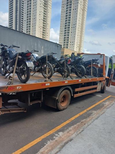 As cinco motocicletas apreendidas foram levadas para à delegacia.