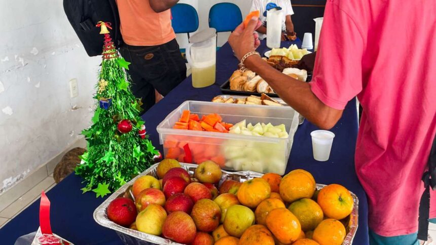 O Centro de Referência Especializado para População em Situação de Rua (Centro Pop) de Várzea Grande realizou um café da manhã especial para os usuários cadastrados, com frutas e bolo, como forma de acolhimento e cuidado social.