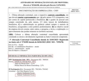 Em abril de 2023, foi encaminhado um documento à Agência Nacional de Mineração (ANM), ligada ao governo federal, para informar que a 3F Participações S/A, a partir de uma alteração na Junta Comercial, passou a ter como acionistas o empresário Joni Eden Baqueta Fávaro, a candidata a vice-prefeita Rafaela Fávaro e sua mãe, a empresária Beatriz Vendramini Fávaro.